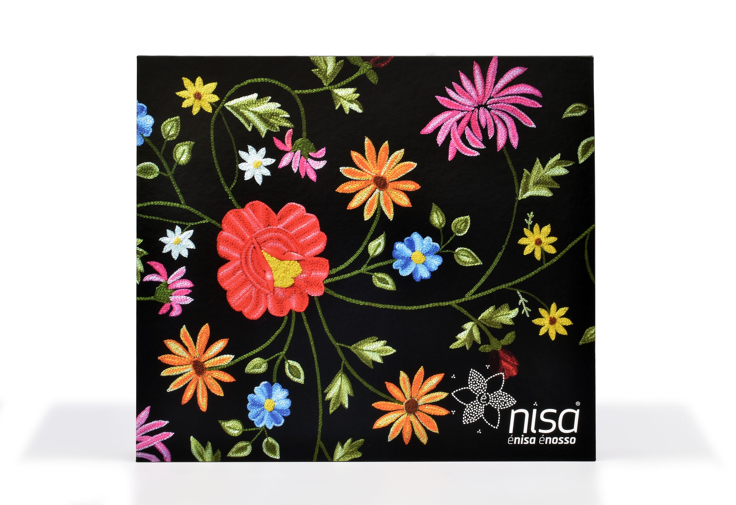 A pega foi inserida de forma a facilitar o transporte. Esta embalagem leva ainda um tabuleiro para perfeito acondicionamento dos produtos e tem uma tampa com fecho magnético.